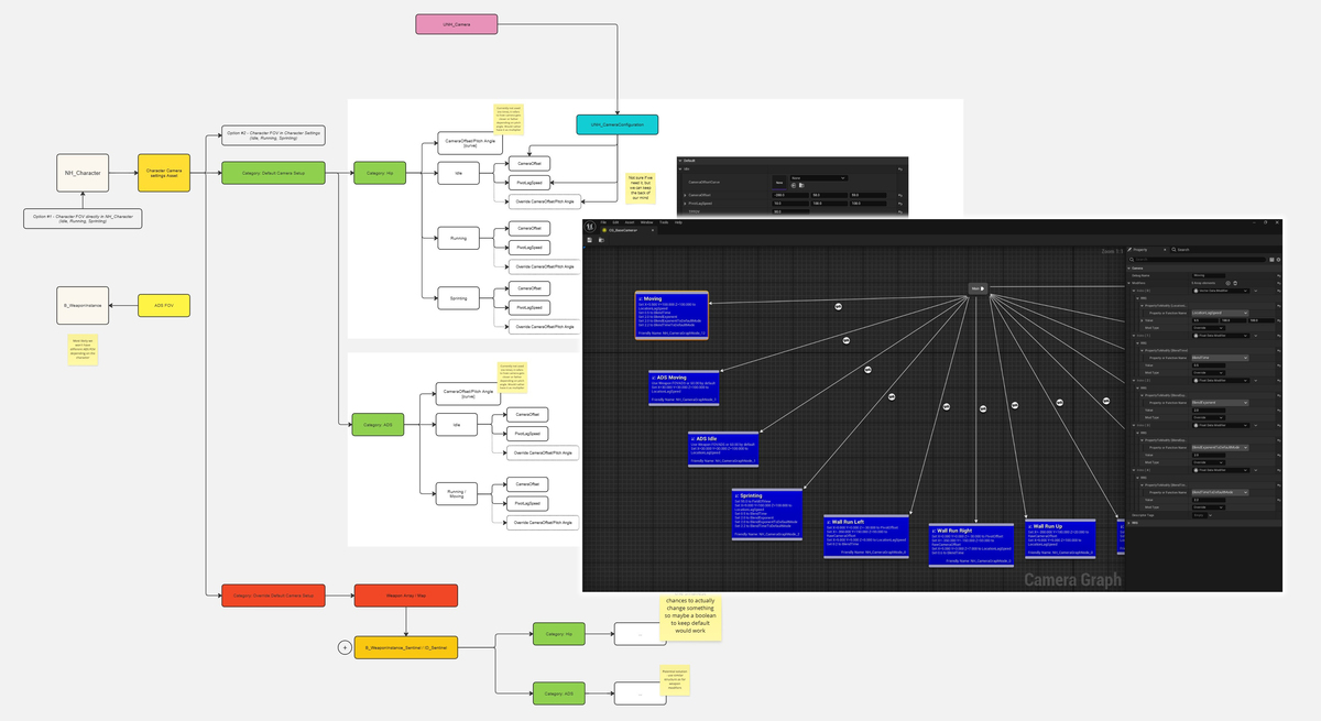 In order to achieve that I had to collaborate with level design to elaborate strict metrics for interiors and with engineering to develop a scalable system to support framings for various characters, movement state that supports both movement, abilities and gunplay.